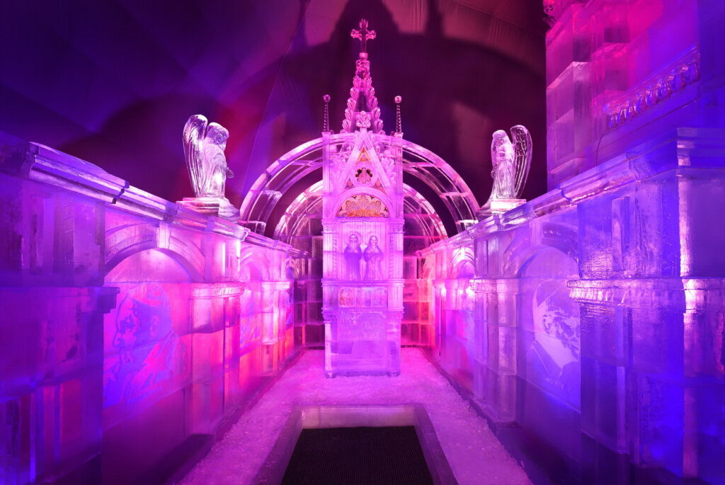 Čia prasideda įdomiausia dalis! Šiam sezonui organizatoriai paruošė naujieną – ledo tunelį, kuriuo galite patekti tiesiai į kupolą. O jame -monumentalus bazilikos fasadas su 13 apaštalų skulptūromis.